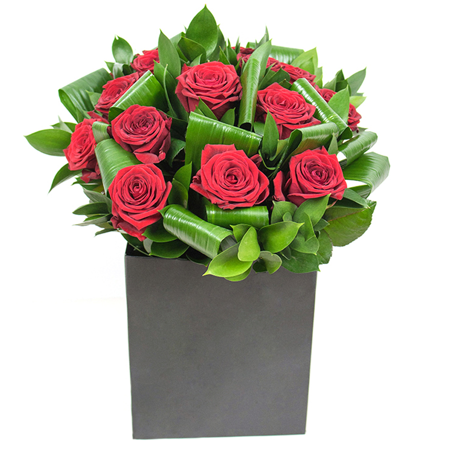 Delight in the artistry of our red rose bouquet, where every stem is arranged to perfection. Featuring vibrant red roses alongside graceful aspidistra leaves and ruscus, this arrangement is a harmonious blend of nature’s finest. By hand-selecting each bloom, we ensure an unmatched quality filled with freshness and vitality, ready to brighten any space.